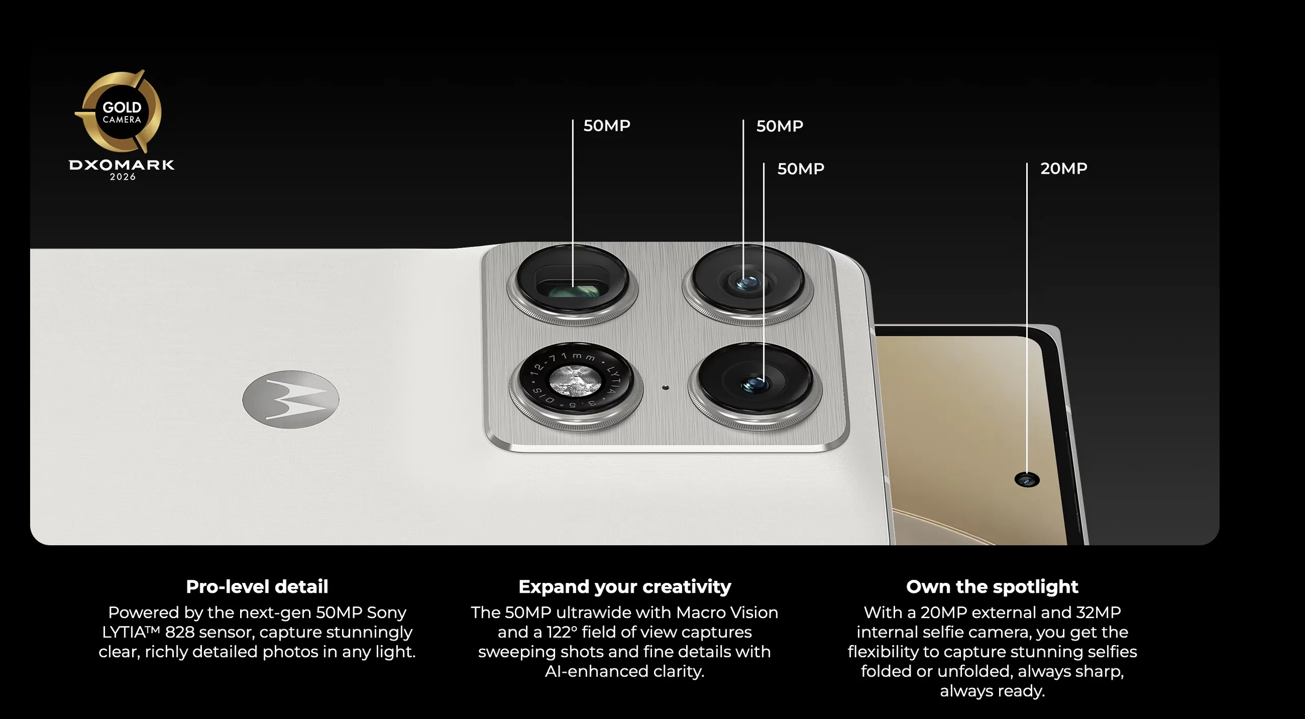 A Motorola mindezt a hardvert egy IP49 tanúsítvánnyal rendelkező házba csomagolta, amely 243 g súlyú és 160 x 73,6 x 9,89 mm-es, illetve 4,55 mm-es, kihajtott állapotban. A vállalat azt ígéri, hogy 2030 márciusáig folyamatosan kiadja a biztonsági frissítéseket is, bár arra vonatkozóan nincs garancia, hogy a Android 16-on túlmenően hány operációs rendszerfrissítést ad ki.