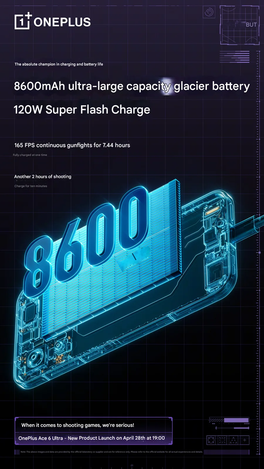 Ott van a "Glacier Battery" chipset a nagy energiahatékonyság biztosítása érdekében. A OnePlus megjegyzi, hogy ez a chip lehetővé teszi a zökkenőmentes teljesítményt még alacsony akkumulátorszint mellett is. A vállalat továbbá megosztja, hogy az Ace 6 Ultra a G2 Pro-val érkezik majd játékchip. Fokozott csatlakoztathatóságot ígér "erőteljes" jelfogadással, alacsonyabb WiFi késleltetéssel és jobb alacsony hálózati kezeléssel.