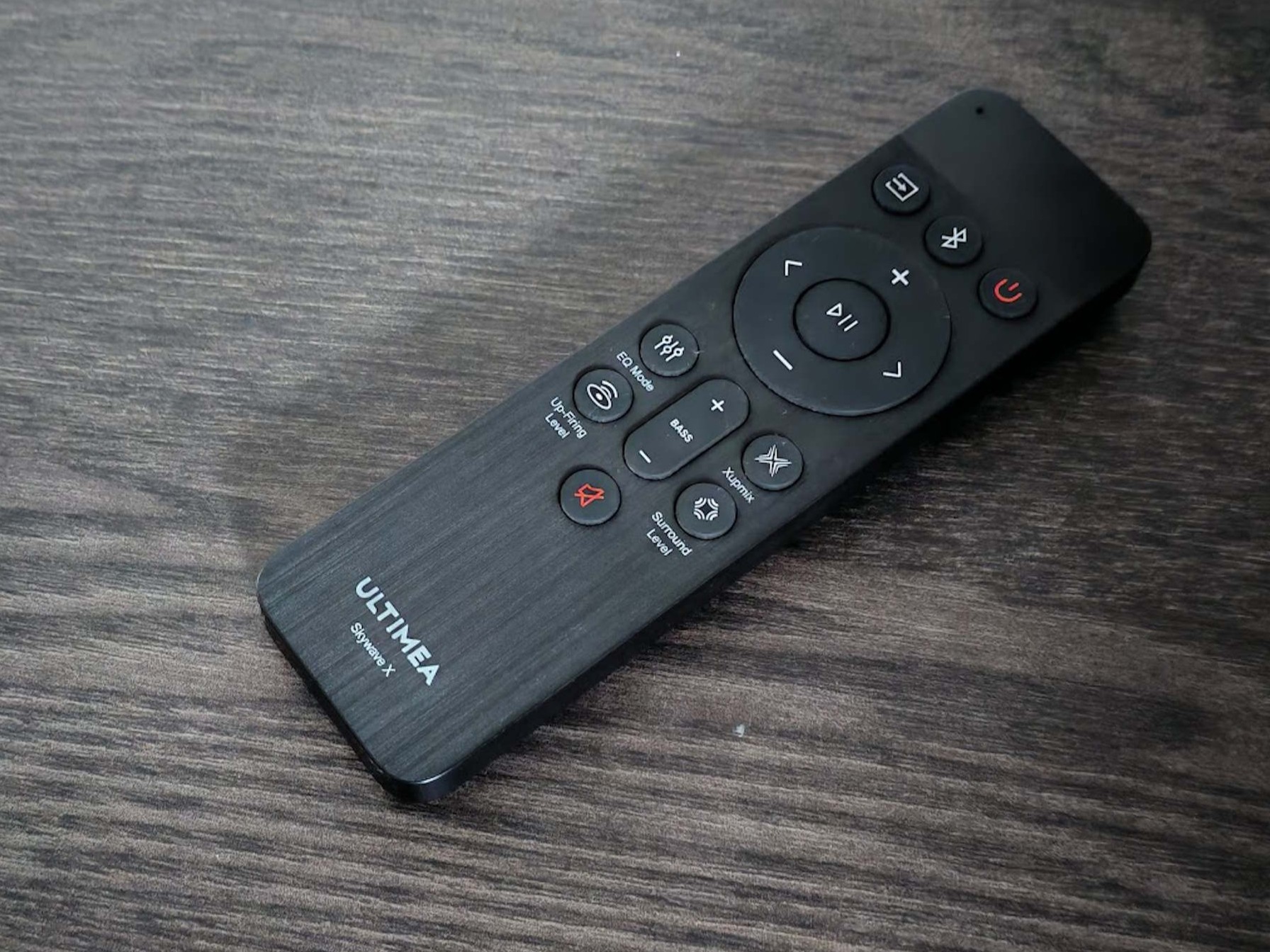 A soundbar tetején gombok találhatók a forrás kiválasztásához, a be- és kikapcsoláshoz, valamint a hangerőszabályozáshoz. A távirányító ugyanezeket a funkciókat kínálja, és tartalmaz gombokat a gyors kiegyenlítő kiválasztásához, a basszus intenzitásának beállításához, a felfelé irányuló hangszórók erősségének, a térhatásnak és a Xupmix aktiválásához. A távirányító meglehetősen robusztusnak tűnik, de egyébként nem figyelemre méltó.