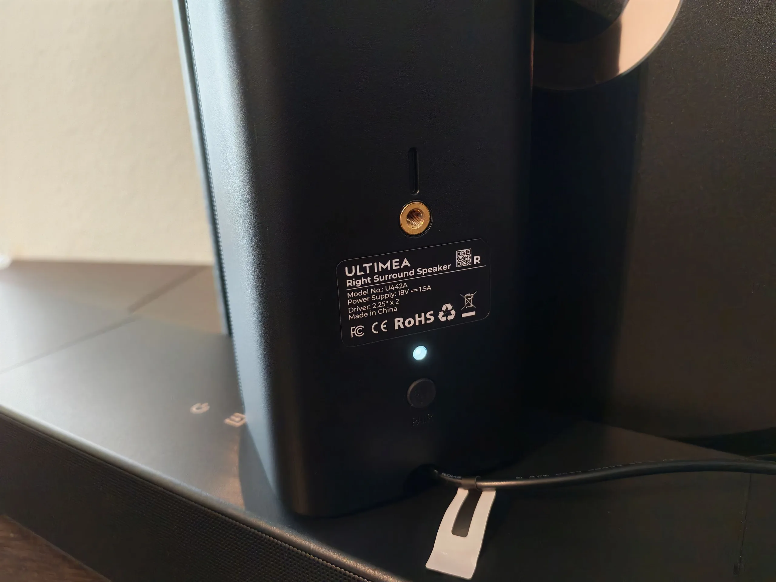 A két szatellit hangszóró ezzel szemben valamivel kevésbé prémium megjelenésűnek tűnik, nem utolsósorban a kis súlyuk miatt, bár az építési minőség továbbra is magas szintű. Mind a soundbar, mind a szatellit hangsugárzók további, felfelé irányuló meghajtókkal vannak felszerelve, amelyek célja a magával ragadó hangélmény fokozása - erről később bővebben.