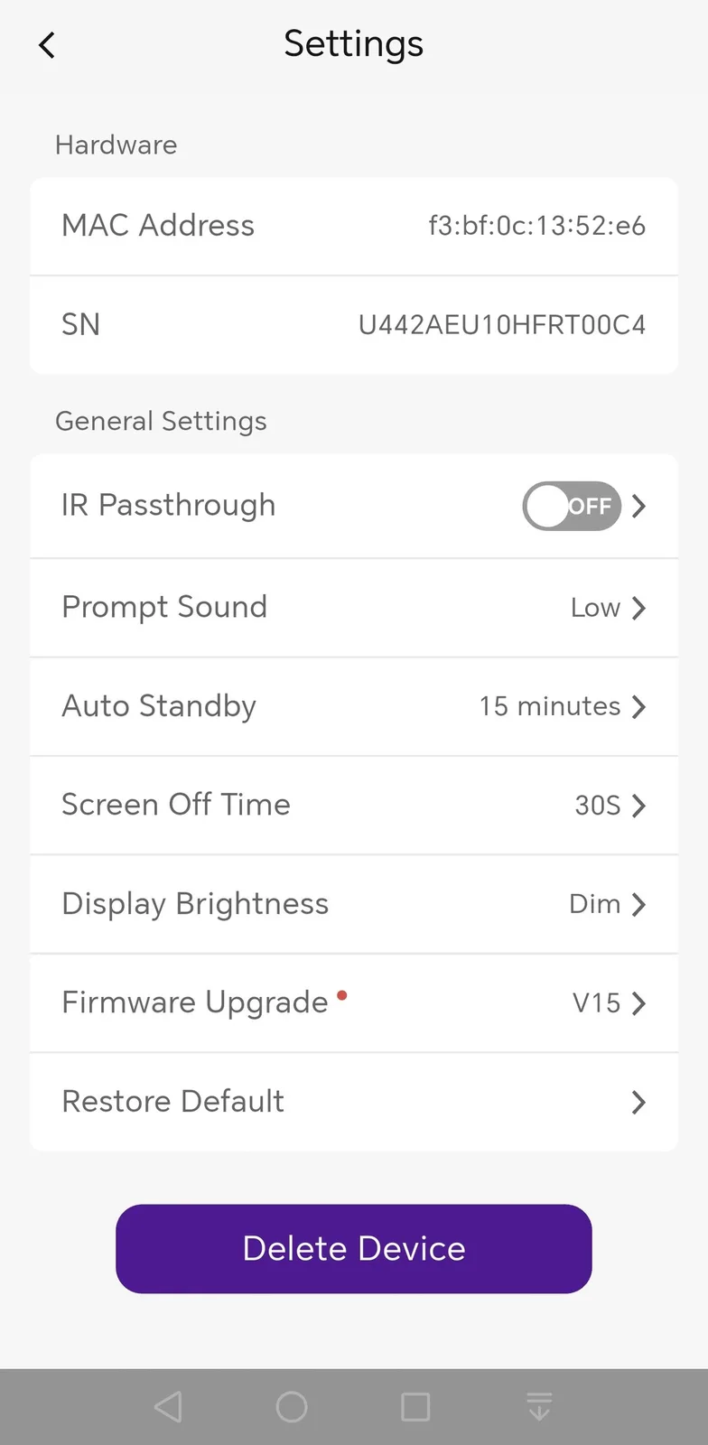 Rendelkezésre áll egy okostelefonos alkalmazás, amely általában ajánlott. Nemcsak a mellékelt távirányító teljes körű helyettesítésére szolgál, hanem lehetővé teszi a felhasználók számára a hat előre beállított equalizer konfigurálását és egyéni EQ-profilok létrehozását is. Az alkalmazáson keresztül történő vezérlés még akkor is lehetséges, amikor a zene egy másik Bluetooth-eszközről szól.