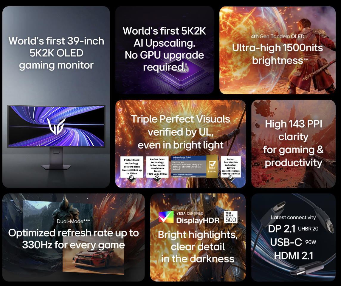 UltraGear OLED 39GX950B: Az LG megerősítette az új Tandem OLED játékmonitor megjelenésének részleteit