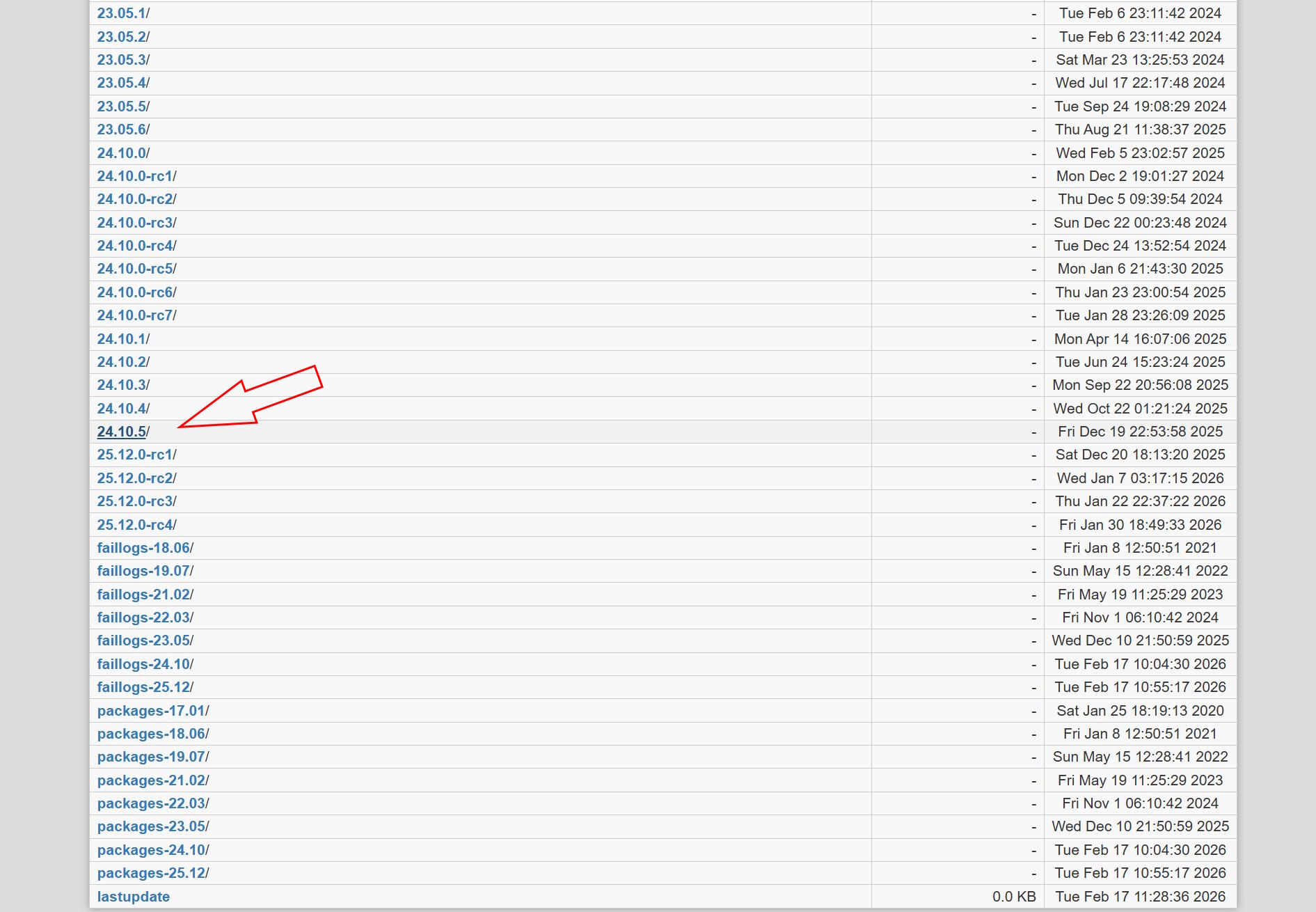 Először is le kell töltenie az OpenWRT képet. A 2026. februári állapot szerint a legújabb stabil kiadás a 24.10.5 verzió.