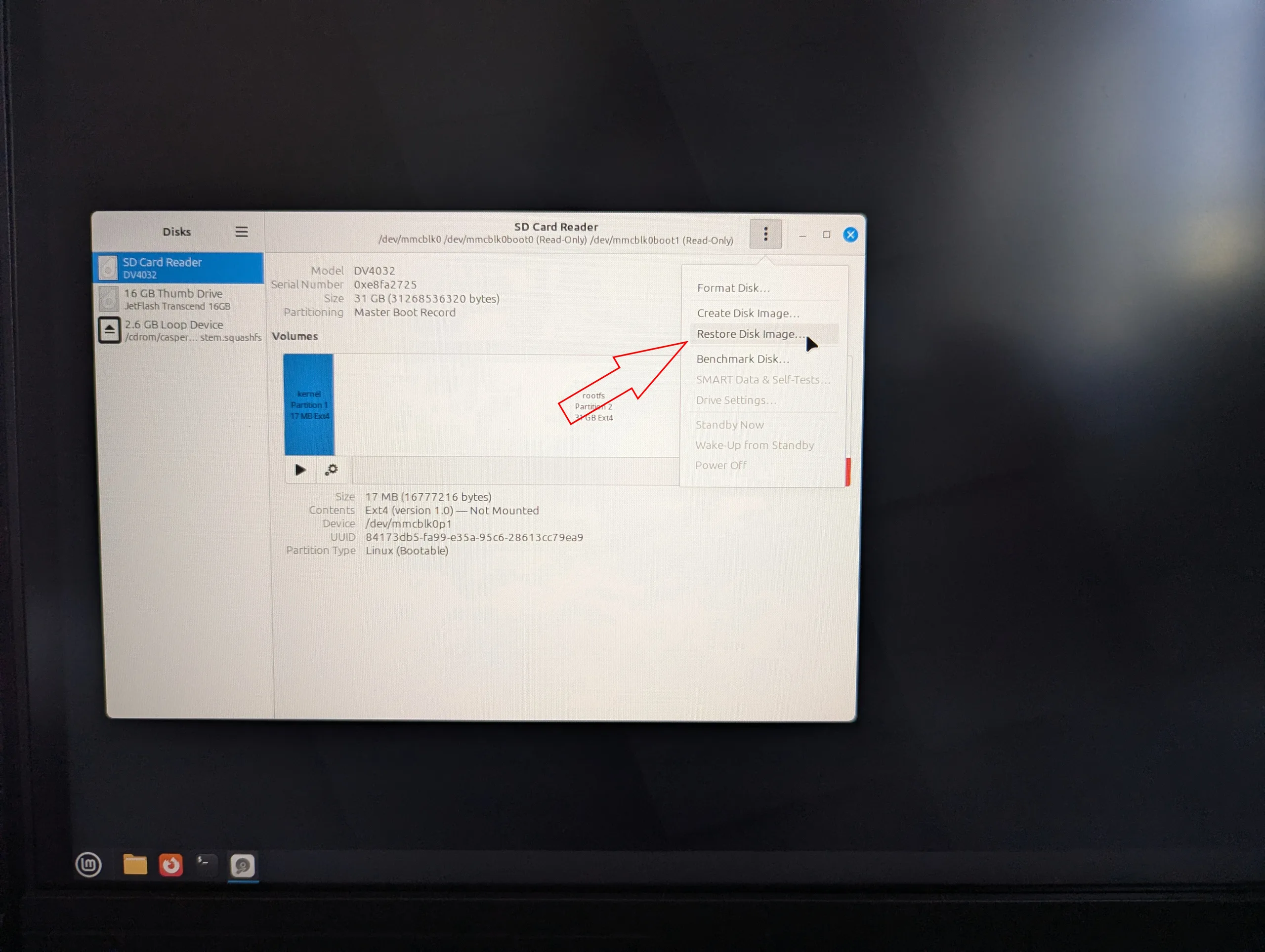 Létrehoztam egy bootolható USB-sticket a Linux Mint (az Ubuntu is működik). Az OpenWRT képet átmásoltam egy második USB-stickre.