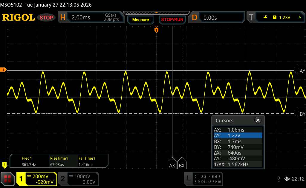 (+) | a csúcsok lineárisak (6.7% delta az előző frekvenciához képest)