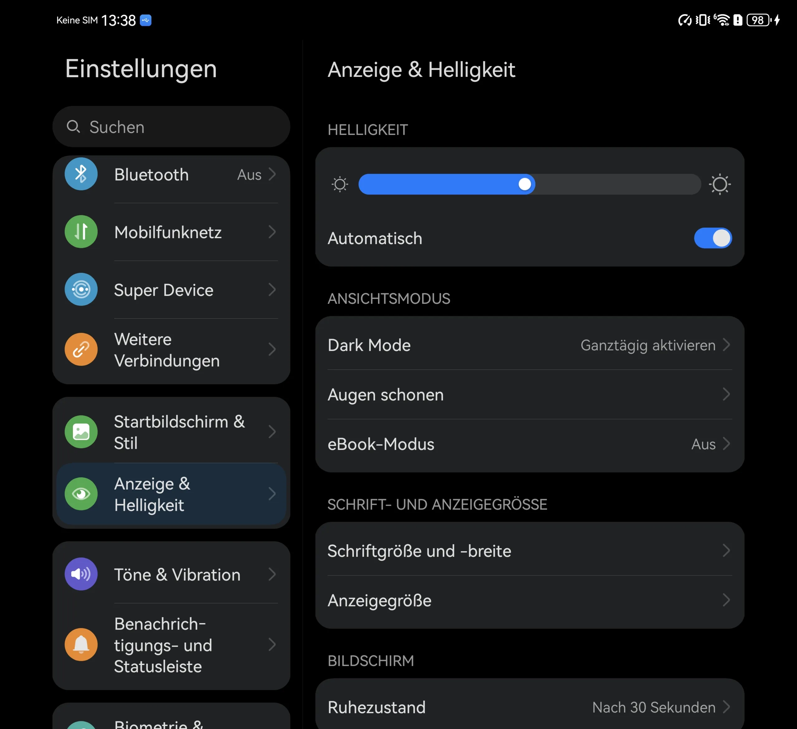 A színvisszaadás szintén a hajtogatható panellel egyenrangú és nagyon pontos. A Huawei a PWM dimmelés terén sem köt kompromisszumokat, és itt is ugyanezt a technológiát használja.