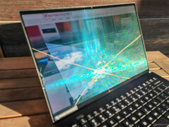 Az Acer egy 14,5 hüvelykes OLED érintőképernyőt (2880 x 1800 képpont, 16:10) használ 120 Hz-en a Samsungtól. Az OLED alapvető erősségei (élénk színek, nagy kontrasztok, gyors válaszidő) megvannak, de az érintőképernyő rétege jól látható raszterhatást eredményez, ami nagyban rontja a szubjektív képminőséget, különösen világos tartalmak esetén. Ezt próbáltuk megörökíteni a jobb oldali képen, de a kamera minimálisan súlyosbítja a problémát. Emellett minden fényerőszintnél 240 Hz-es PWM villódzás is tapasztalható. Mind a fényerő, mind a színhőmérséklet szenzorral szabályozható. Az érintőképernyő nagyon tükröződik, ami korlátozza a használatát, különösen kültéren.