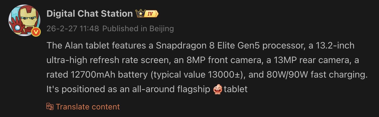 Egy prominens tippadó Digital Chat Station a Weibo oldalon felfedte a legfontosabb specifikációkat egy közelgő Vivo tablet. Bár a tippadó nem hozta nyilvánosságra a tablet nevét, várhatóan a Vivo Pad 6 Pro lesz.