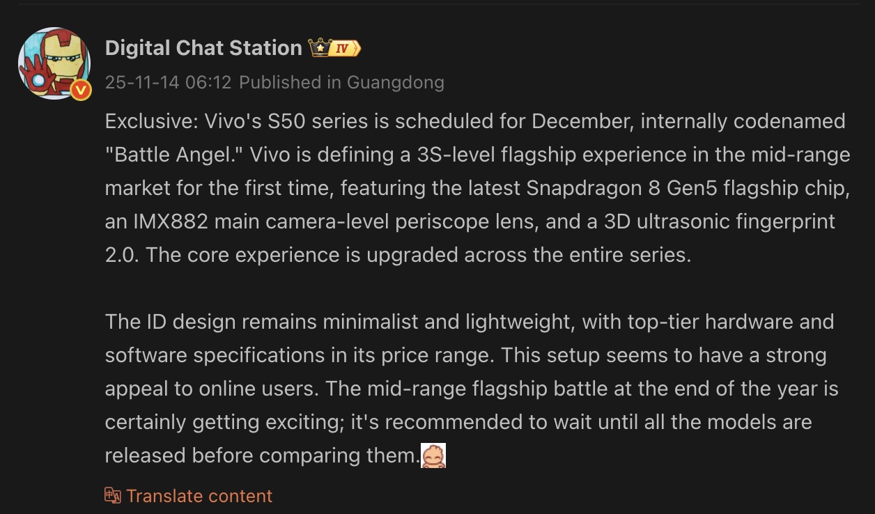 A Vivo S50 sorozat a tippek szerint decemberben jelenik meg. Érdemes megjegyezni, hogy a Vivo S sorozat általában kizárólag a kínai piacra korlátozódik. Néhány modell azonban végül globálisan is piacra kerül. A Vivo S30 Pro Mini például a Vivo S30 Pro Mini névre lett átkeresztelve Vivo X200 FE a globális piacon.