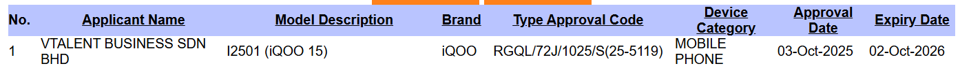 A Vivo X300 Pro a "V2514" modellszámmal SIRIM tanúsítványt kapott Malajziában. Emellett az iQoo 15 az "I2501" modellszámmal kapott tanúsítványt A SIRIM-tanúsítványok nem árulnak el semmit specifikációkat a készülékekről. Azonban ez egy közelgő globális bevezetésre utaló jelnek tekinthető.