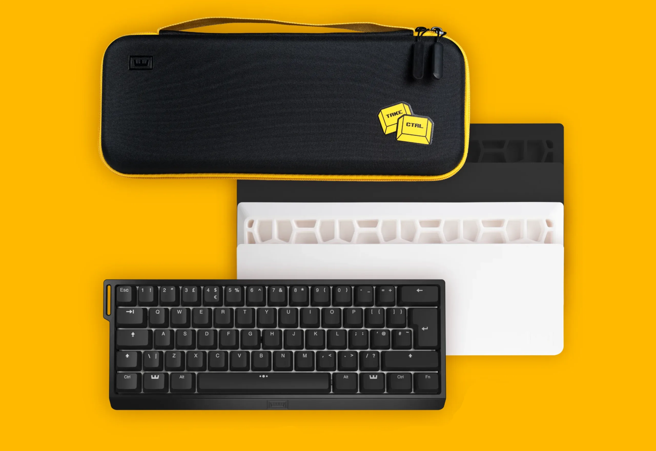 A fekete péntekre a Wooting 60HE mellé ingyenesen járó hordtáska nagyjából olyan, mint a hordtáska, amelyet a Iqunix EZ63-hoz tartozott, amelyet korábban áttekintettünk. A Wooting utazótáska csak fekete színben kapható, sárga ékezetekkel, amely illeszkedik a 60HE raktári szíjához, és kemény EVA héjjal készült, puha bársony belsővel, amelybe a billentyűzet befészkelheti magát. Magához a 60HE-hez hasonlóan a tok is kifejezetten kompatibilis más, "hasonló méretekkel rendelkező" 60%-os billentyűzetekkel