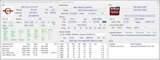SCHENKER XMG Core 16 M25 AMD Ryzen AI 9 HX 370 ⎘ Nvidia GeForce RTX 5070 Laptop ⎘ 64 GB Memória, 2048 GB SSD | List Price: 2100€ | 2.1 kg | 23 mm | 16.00" 2560x1600 189 PPI IPS | |