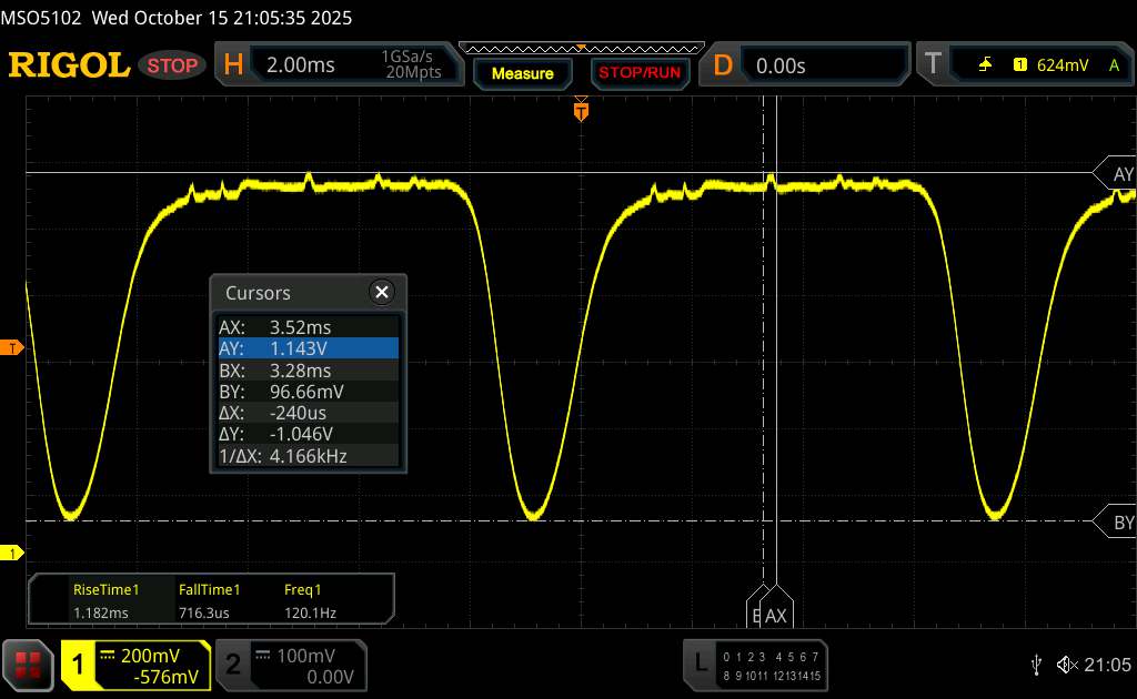 (+) | a csúcsok lineárisak (2.6% delta az előző frekvenciához képest)