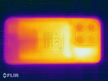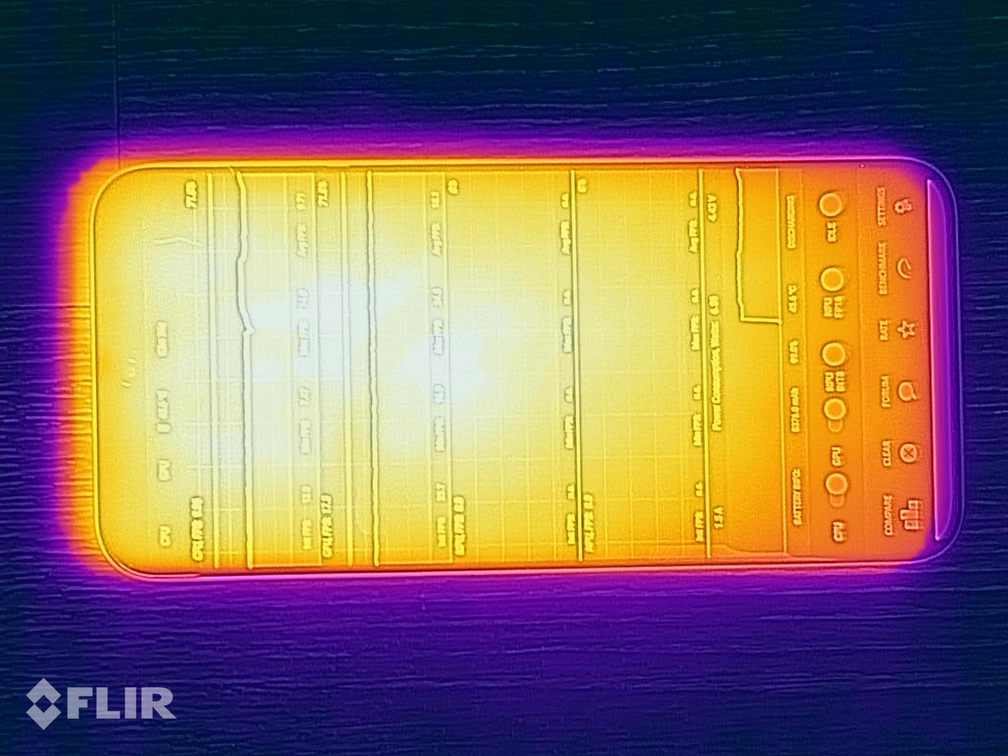 (±) A felső oldalon a maximális hőmérséklet 42.8 °C / 109 F, összehasonlítva a 35.2 °C / 95 F átlagával , 21.9 és 247 °C között a Smartphone osztálynál.