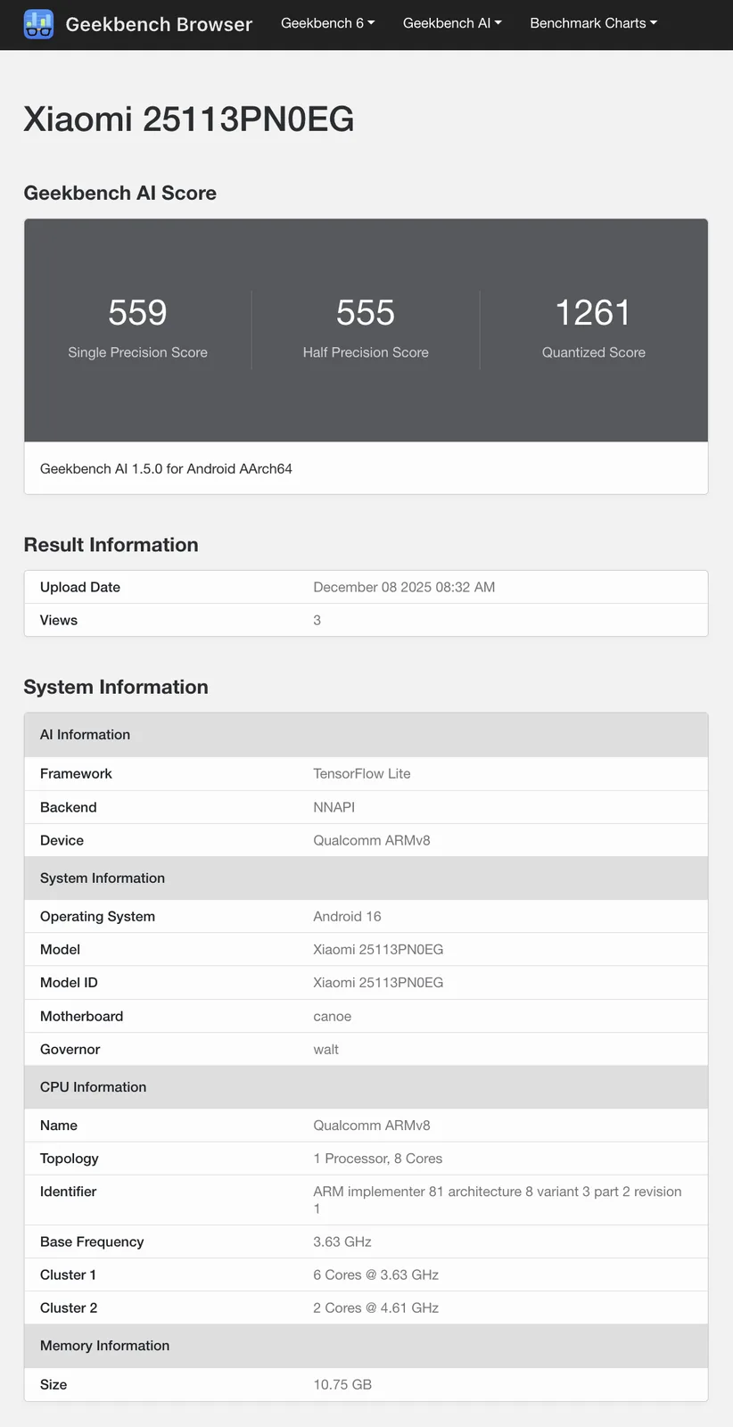 Konkrétan a Xiaomi tanúsította a Xiaomi 17 értékesítésre a thaiföldi Nemzeti Műsorszolgáltatási és Távközlési Bizottságnál (NBTC). Végső soron az NBTC csak a 25113PN0EG-t kapcsolja a Xiaomi 17-hez. Ez a globális modellszám azonban egyszerre jelent meg a Geekbench-en. Ebből a listázásból azt szűrhetjük le, hogy a globális Xiaomi 17 a rendszeres Snapdragon 8 Elite Gen 5 lapkakészletet tartalmaz, akárcsak kínai társa. Nem mellesleg a Xiaomi 17 nemzetközileg is 12 GB RAM-mal fog indulni.