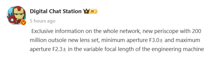 A szóban forgó szivárogtató most egy újabb részletet fedett fel erről a Leica optikával ellátott, potenciális 200 MP-es optikai zoomos megoldásról: a rekeszértékeket a gyújtótávolság-tartomány mindkét végén. A kiszivárogtató szerint az egyenértékű 70 mm-es gyújtótávolságnál f/2,3, 100 mm-nél pedig f/3,0 rekeszérték várható, ami az olcsóbb zoomobjektívek jellemzője, amelyek a gyújtótávolság növekedésével egyre kevesebb fényt engednek át. A szöveg azt is sugallja, hogy ez egy belső periszkóplencse lehet, amelyet a Xiaomi 17 Ultrába építettek be, hasonlóan a Sony Xperia 1 VII-ben lévőhöz. Ezek az információk egy jelenlegi tesztkészülékre vonatkoznak, így a megjelenés előtt még változásokat lehet eszközölni