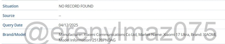 Pletyka szerint az új periszkópmodul nem csak egy egyszerű teleobjektívet tartalmaz, hanem egy valódi optikai zoomos, változtatható gyújtótávolságú kamerát, bár ezt még nem erősítették meg. Ami viszont már viszonylag biztos, hogy Európában is számíthatunk a Xiaomi 17 Ultra megjelenésére. Bár a legtöbb megfigyelő ezt már előre sejtette, a 2512BPNDAG számmal ellátott globális modell most először bukkant fel az IMEI adatbázisban, amint azt az alábbi képernyőkép is bizonyítja. Ezért arra számítunk, hogy a Xiaomi 17 Ultra Kínában decemberben, globálisan pedig 2026 márciusában jelenik meg
