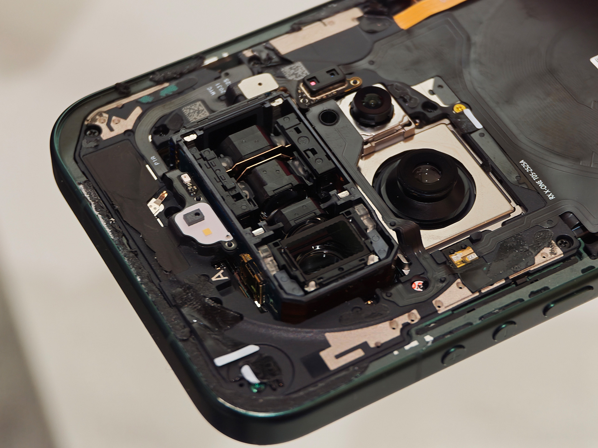 A második fő jellemző a teleobjektív modul: ahelyett, hogy több, egymásra épülő teleobjektív kamerát használna, a Xiaomi egy 200 megapixeles, változó mechanikai kialakítású periszkópot épített be. A modul belsejében a lencsecsoportok eltolódnak, hogy egy folyamatos optikai zoomtartományt fedjenek le, amely nagyjából a klasszikus 75-100 milliméteres 35 mm-es formátumnak felel meg. Ellentétben sok versenytárssal, amelyek hirtelen váltanak a 3x és 5x teleobjektív között, a képkivágás folyamatosan állítható anélkül, hogy digitális vágáshoz folyamodnánk. A mindennapi használatban ez egyenletesebb képminőséget biztosít a zoomoláskor: a tipikus portré-fókusztávolság és a szűkebb, 100 milliméteres kivágás között a képek optikai jellege hasonló marad, ahelyett, hogy láthatóan két különböző modul között ugrálna. A zoomtartomány kicsi, de ha belenézünk a Xiaomi okostelefon belsejébe, gyorsan kiderül, hogy miért van ez így - sok hely kell hozzá.