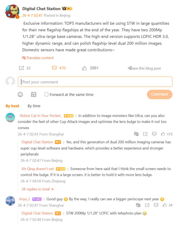 Közülük többen, nyilvánvalóan a Xiaomi is, várhatóan az év vége felé nagyobb mértékben támaszkodnak majd a kínai SmartSens alkatrészgyártó 1/1,28 hüvelykes szenzorain alapuló kettős 200 MP-es kamerarendszerekre, amelyek csúcskategóriás változata támogatni fogja a LOFIC HDR harmadik generációját a kivételes dinamikatartomány érdekében. A Xiaomi már használja a LOFIC-et a Xiaomi 17 Ultra 1 hüvelykes szenzorához, és 2026 végére a technológiát egy új verzióban a telefotó kamerához is használhatják, ahogy azt a Weibo kommentjeiben tisztázták.