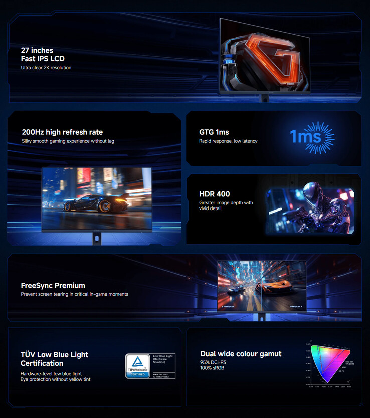 Nem csak ez, de a Xiaomi 400 nits csúcsfényerősségről, 1000:1 kontrasztarányról és 1 ms GtG válaszidőről számol be. A 2K Gaming Monitor G27Qi 2026 továbbá AMD FreeSync Premiumot kínál a képernyőszakadás csökkentése érdekében. Emellett a monitor 3,5 mm-es csatlakozóval, valamint kettős DisplayPort 1.4 és HDMI 2.0 porttal rendelkezik. A 2K Gaming Monitor G27Qi 2026 jelenleg 289 AUD (~201 dollár) áron kapható, ami 28%-os kedvezményt jelent a 399 AUD (~278 dollár) árról. Más piacokon való elérhetőségről azonban egyelőre nincs hír.