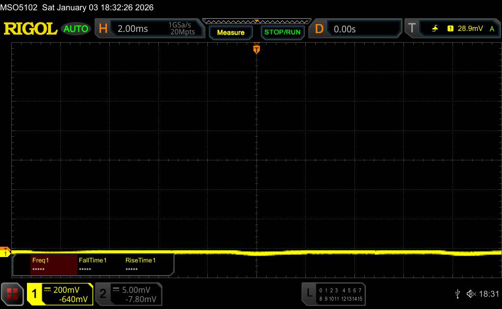 Méréssorozat rögzített zoom-szinttel és különböző fényerő beállításokkal (Az amplitúdó görbe a minimális fényerőnél laposnak tűnik, de ez a méretezés miatt van. Az információs doboz az amplitúdó nagyított változatát mutatja minimális fényerőnél)