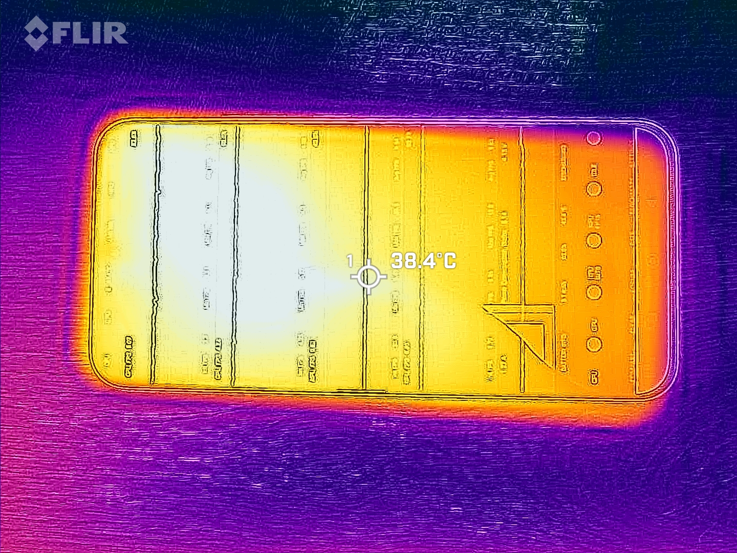 (+) A felső oldalon a maximális hőmérséklet 38.8 °C / 102 F, összehasonlítva a 35.2 °C / 95 F átlagával , 21.9 és 247 °C között a Smartphone osztálynál.