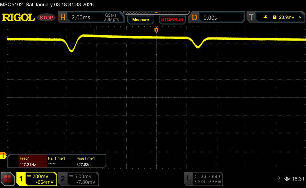 (+) | a csúcsok lineárisak (1.8% delta az előző frekvenciához képest)