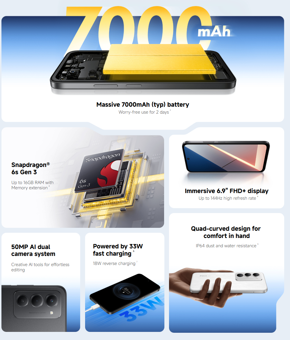 Emellett csendben megerősítette egy új Poco M8 sorozatú mobiltelefon létezését. A kontextus kedvéért, a Poco M8 és a Poco M8 Pro egyidejűleg debütáltak januárban. Most ezekhez csatlakozott a nagyobb Poco M8s, amely a 6,9 hüvelykes kijelzőnek köszönhetően 169,5 x 80,4 x 8,4 mm-es.