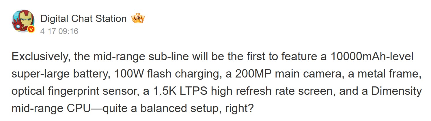 Állítólag lesz 1,5K LTPS nagy frissítési frekvenciájú képernyő is, és a sorozatot várhatóan középkategóriás Dimensity processzorok hajtják majd. Ennek ellenére nem biztos, hogy a Redmi Note 17 sorozat lesz az egyetlen ilyen specifikációkkal rendelkező termékcsalád, mivel állítólag a Vivo és az iQOO is dolgozik versenyképes középkategóriás telefonokon.
