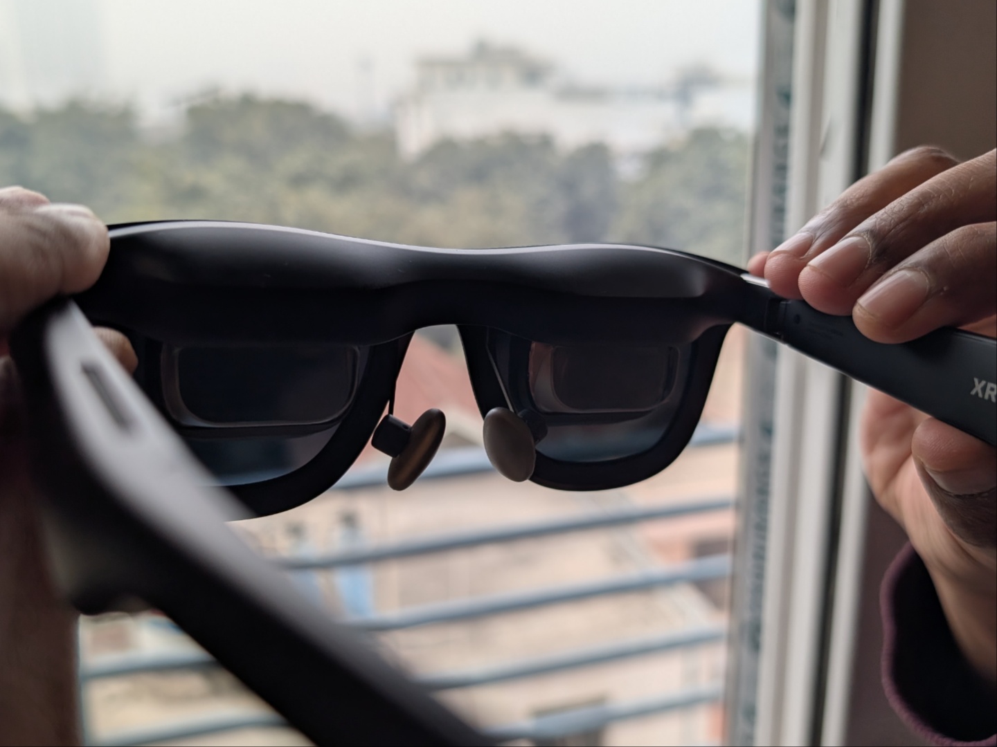 Az USB-kábel a fül mögül jön ki, és elég hosszú ahhoz, hogy az előtted lévő asztalon lévő laptophoz vagy a zsebedbe helyezett telefonodhoz vezessen. Nem növeli a szemüveg súlyát, és nem is áll útban, szóval ez egy plusz.