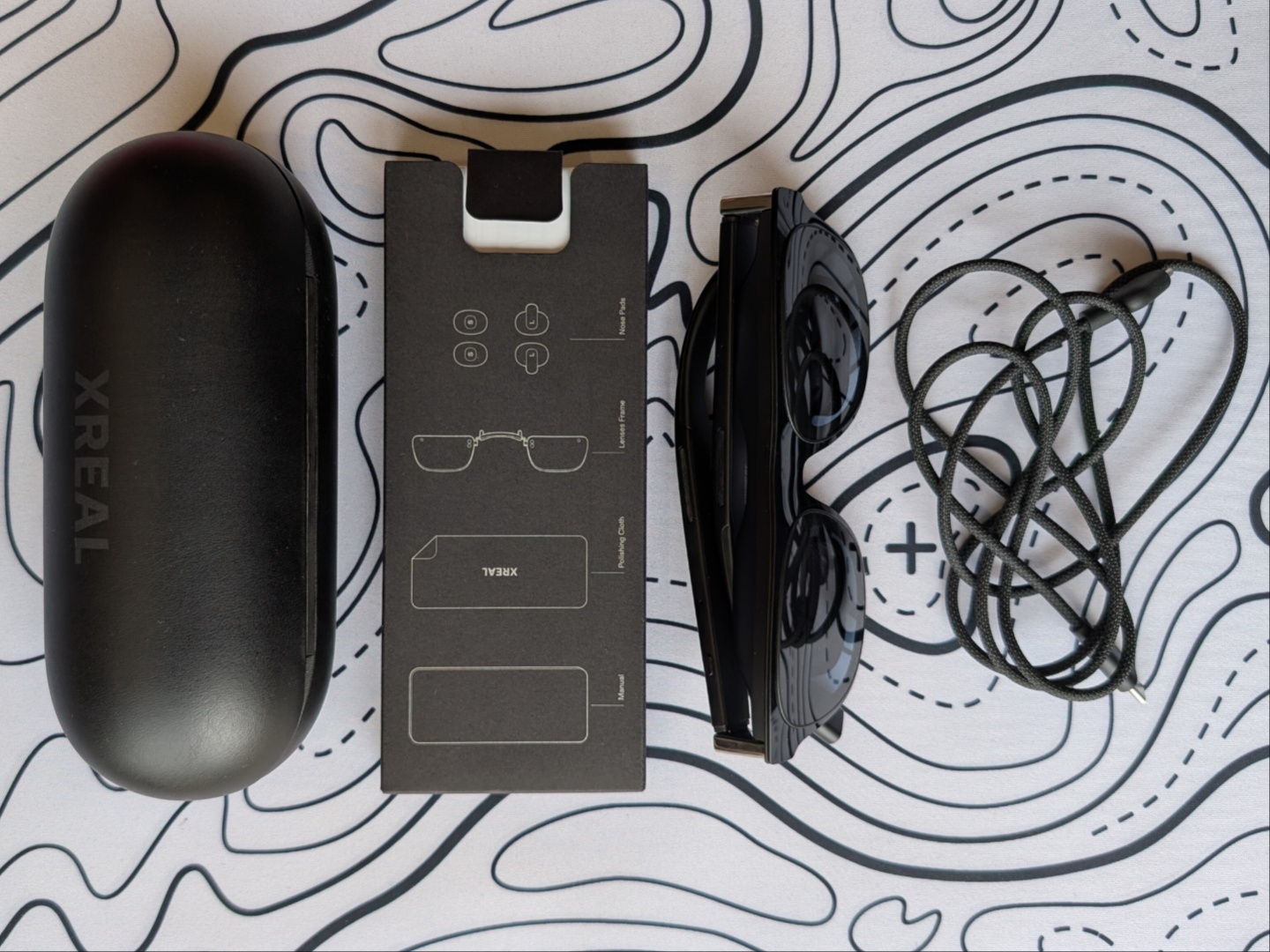 Az Xreal One Pro szemüveg szépen csomagolva, fekete dobozban, aranyszínű ékezetekkel a prémium érzés érdekében. Belül egy viszonylag nagy tokban van elhelyezve, amelyben van hely az USB Type-C kábel és a szemüveg számára. Az Xreal egy mikroszálas kendőt, egy lencsekeretet és különböző méretű orrpárnákat is biztosít az ideális látási élmény érdekében. Akinek vényköteles lencsékre van szüksége (mint nekem), az a HonsVR által külön szállított készletet kap.