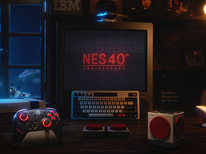 A NES40 Collection névre keresztelt termékek közé tartozik a 8BitDo Ultimate 2 Bluetooth - NES 40th Limited Edition, a Retro 68 Keyboard - NES 40th Limited Edition és a Retro Cube 2 Speaker - N Edition.