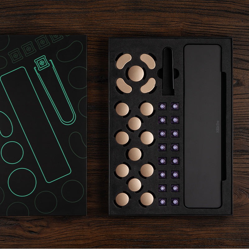A frissítő készlet 16 Kailh Purple Glede lineáris kapcsolót tartalmaz, amelyek csendesek és rövidebb, 0,8 mm-es előretolási távolsággal rendelkeznek. a 8BitDo arany színű billentyűsapkákat is mellékel a vezérlővel együtt szállított fekete és piros billentyűk helyett. A vásárlók a dobozban találnak egy billentyűsapkahúzót és egy csuklótámaszt is.