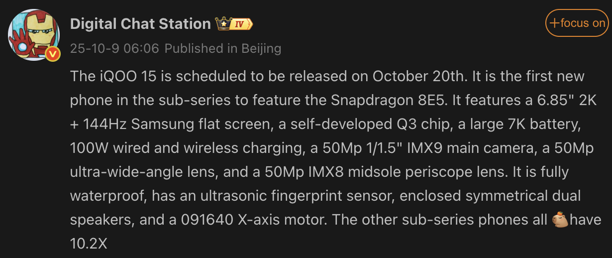 Az iQoo 15 a vállalat következő generációs zászlóshajója Android telefon, amely a tavalyi iQoo 13. A kínai vállalat korábban elárulta, hogy az iQoo 15-öt a legújabb Qualcomm Snapdragon 8 Elite Gen 5 processzorral. Most az iQoo nyilvánosságra hozta a telefon kínai megjelenési dátumát.